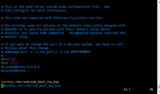 然后,修改服務器上SSH的配置文件,在文件中添加一行 Port 1618 并保存退出(:wq)