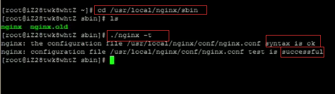 方法一:進入nginx安裝目錄sbin下,輸入命令./nginx -t