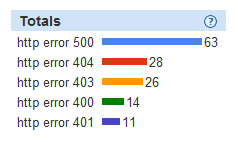 根據Google的搜索數據統計,下面幾個是最常見的錯誤,其中HTTP 500 錯誤發生機率是404錯誤的兩倍: