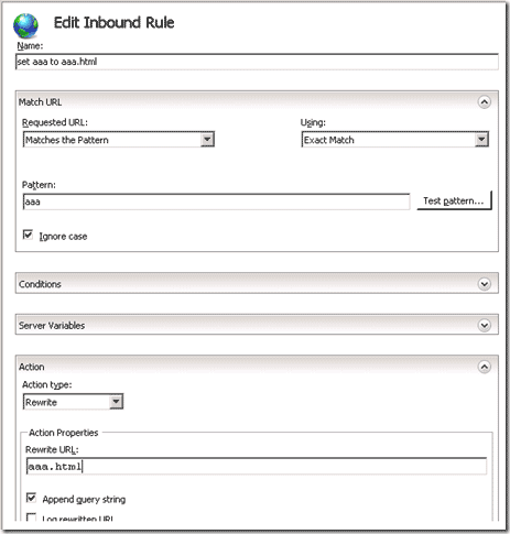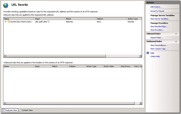 IIS從7.0開始支持了這個URL Rewrite模塊,里面不僅可以定義單個鏈接的重定向,還有整個目錄的重定向,可以說功能強大,用起來方便。十分推薦大家使用!