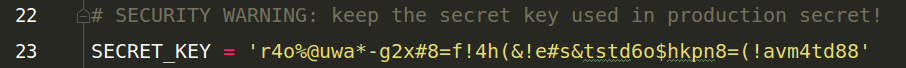 2.項目安全碼,項目要啟動必須要有它,Django在創建時會自動生成這個東西。