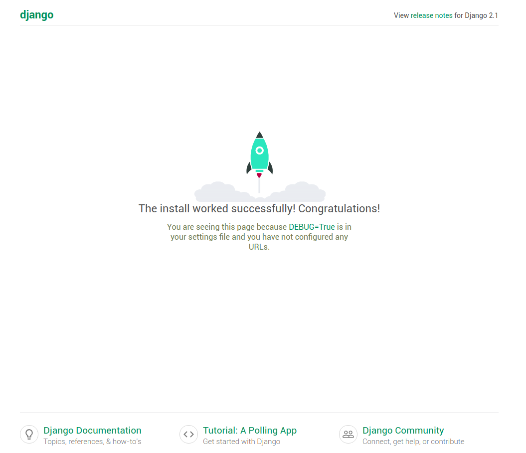 第三步:在瀏覽器中輸入http://127.0.0.1:8000/ 或者: http://localhost:8000(8000是默認端口號)