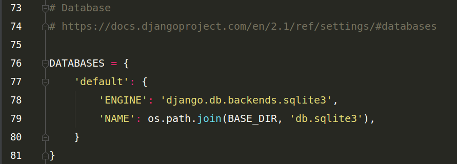 默認使用sqlite3數據庫,如果要使用其他數據庫,就去上面注釋的那個鏈接地址去查找怎樣配置,不用其他的數據庫就不用改動它。