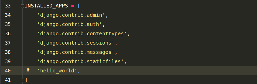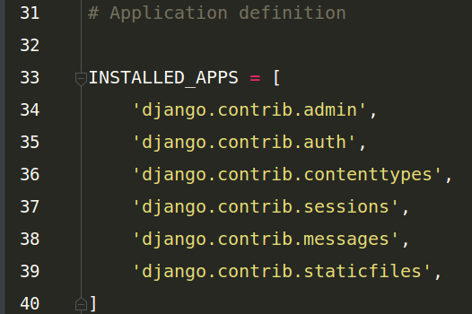 這里面時Django自帶的一些應用,我們創建應用后要把名稱寫在這個里面,才能被Django識別,不然它不認識。