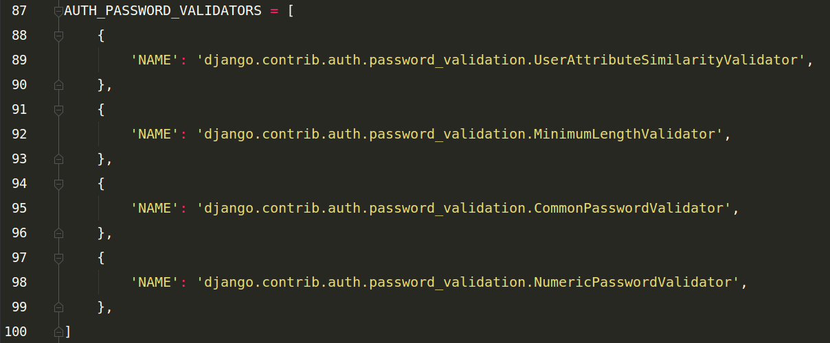 10.AUTH_PASSWORD_VALIDATORS = [ ],密碼認證有關,現在不用管它。