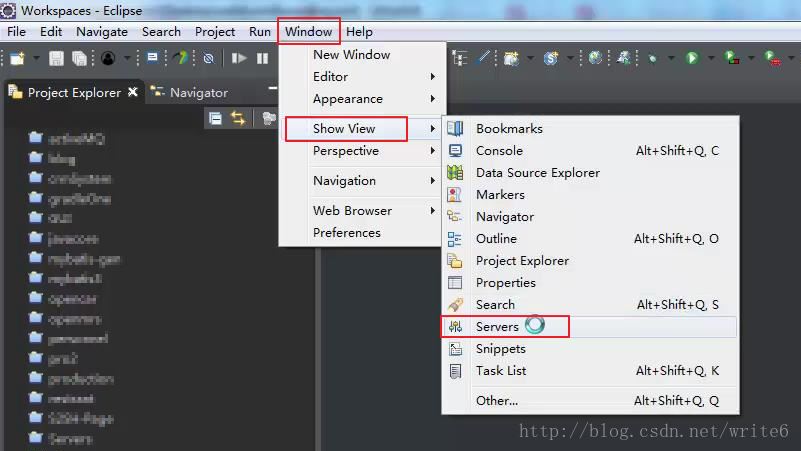 6、Window -> show view -> Server 打開“Server” 面板 配置 Server,如果沒有“Server” ,選擇 “other”,在搜索框輸入Server定位選項,再雙擊打開Server面板