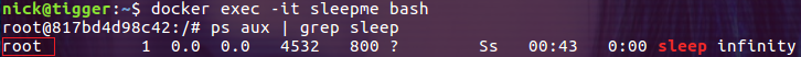 $ docker run -d --user 1000 --name sleepme ubuntu sleep infinity