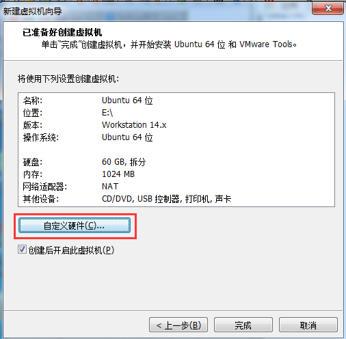 3.7 返回上一頁,點擊完成。等待VMware自動安裝Ubuntu系統
