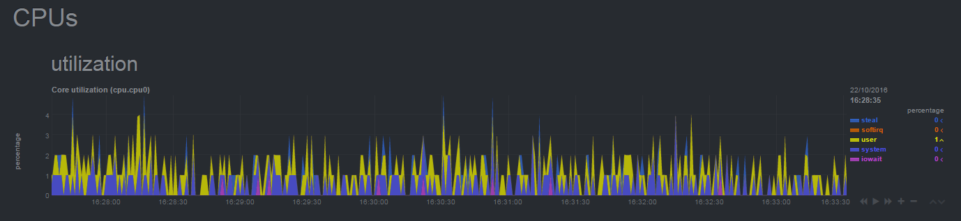 您將看到儀表板以及系統(tǒng)實(shí)時(shí)指標(biāo)的概述。當(dāng)您在后續(xù)圖形中的每個(gè)時(shí)間段上鼠標(biāo)懸停時(shí),頁面頂部的HUD樣式指示器會(huì)發(fā)生變化。