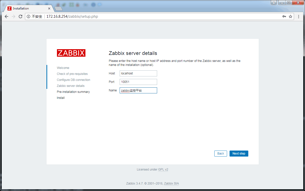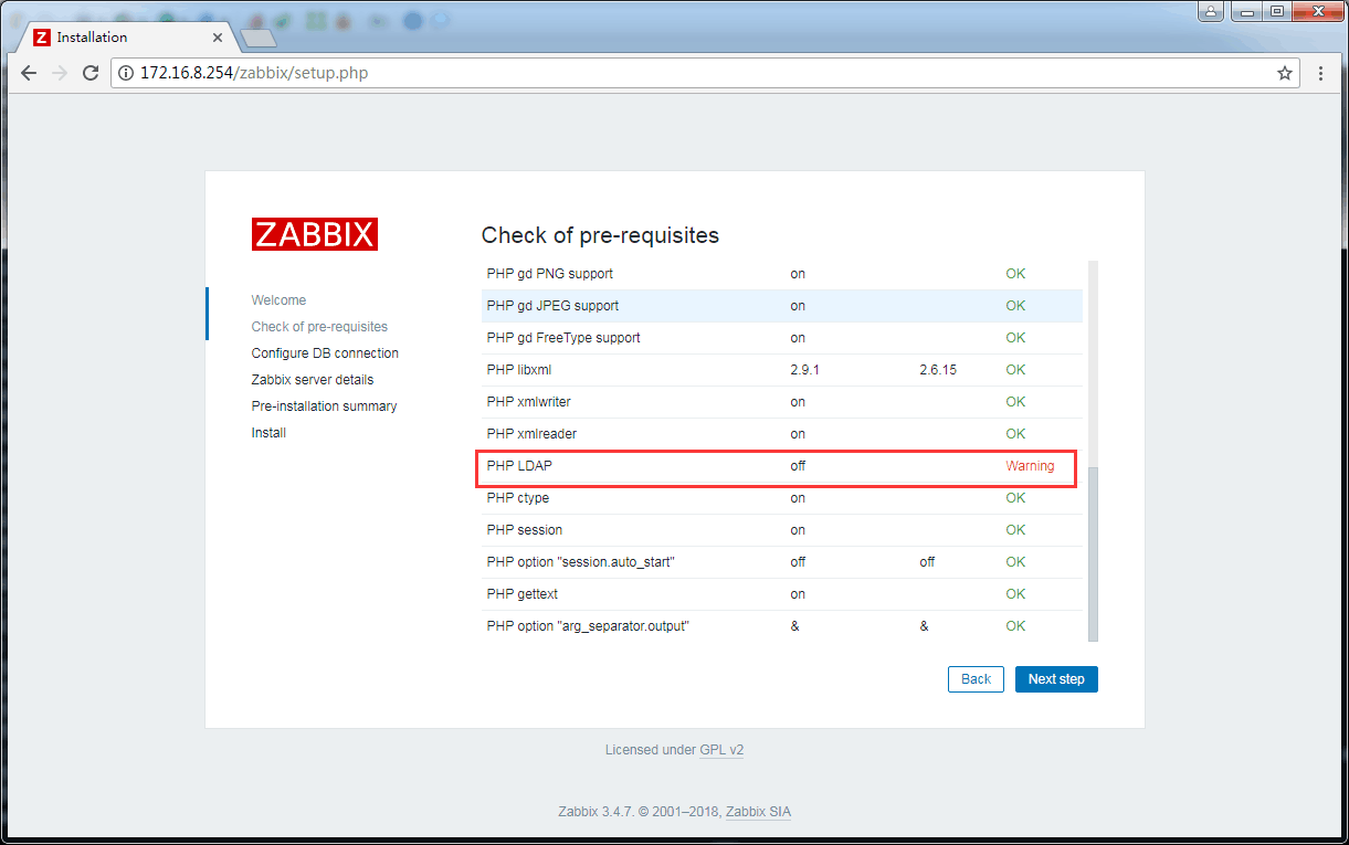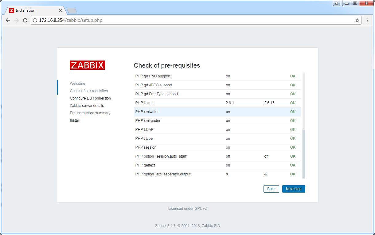 至此zabbix 前面安裝 “Check of pre-requisites”全部OK