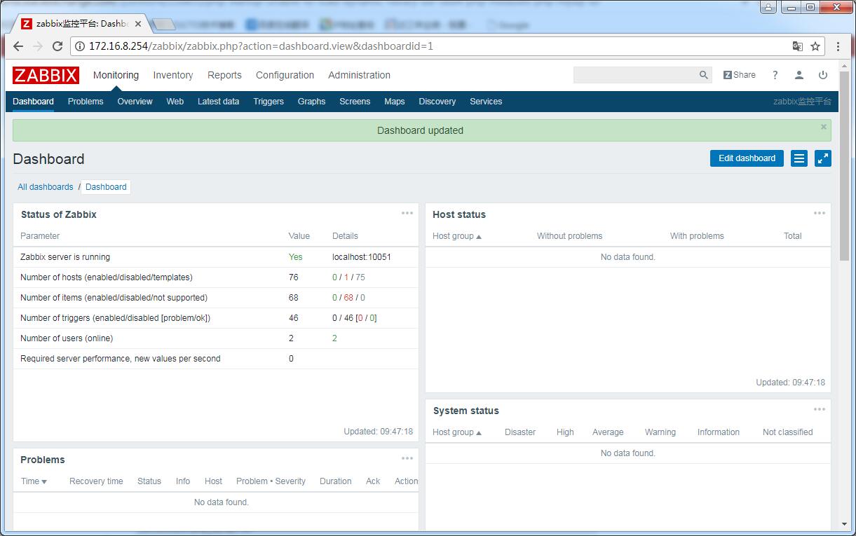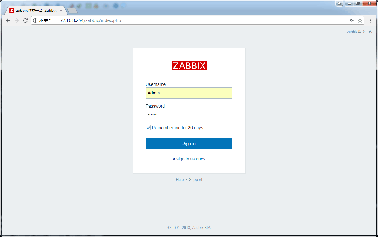 登陸,默認用戶名Admin,密碼zabbix