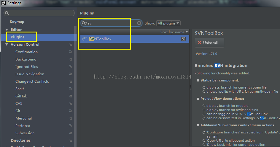 2. 在Webstorm2017中安裝“SVNToolBox”插件