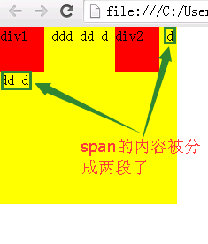 span里面的內(nèi)容被分成了兩段,不是一個(gè)完整的塊了。