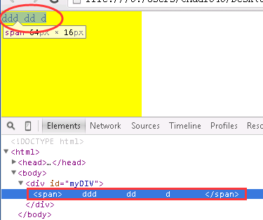 比如我們?cè)趦蓚€(gè)div標(biāo)簽之內(nèi)加入" ddd dd d ",效果如下,無(wú)論有多少個(gè)相連的空白符號(hào),最終呈現(xiàn)的效果都只有一個(gè)空格符