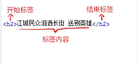 2.html中的標簽一般都是成對出現的,分開始標簽和結束標簽。結束標簽比開始標簽多了一個/。