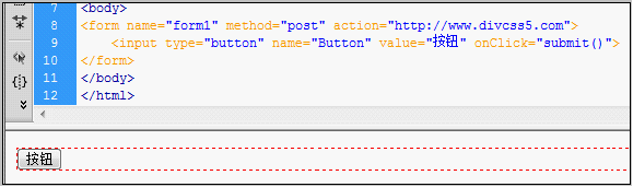 <input type="button" name="Button" value="按鈕" onClick="submit()">