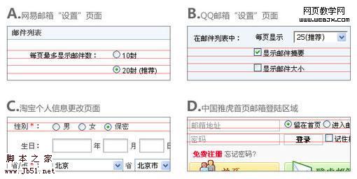 最近的項目涉及到很多表單的制作,特別是復選框(checkbox)和單選框(radio)。但是在前端開發過程中發現,單(復)選框和它們后面的提示文字在不進行任何設置的情況下,是無法對齊的,而且在Firefox和IE中相差甚大。即使設置了vertical-align:middle,也依然不能完美對齊。如下圖所示: