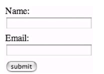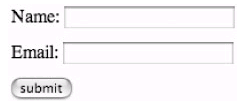 <form action="/path/to/script" method="post"> <p> Name: <input type="text" name="name" /><br /> Email: <input type="text" name="email" /><br /> <input type="submit" value="submit" /> </p></form>