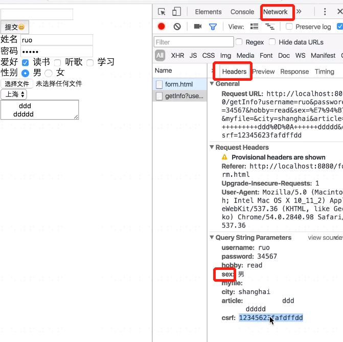 點(diǎn)開檢查-network-header可以看到表單提交的信息
