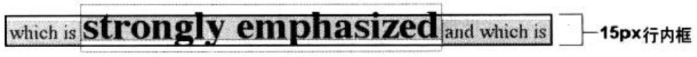 對(duì)于行內(nèi)非替換元素或匿名文本某一部分,font-size和font-family確定了內(nèi)容區(qū)的高度。在宋體情況下,如果一個(gè)行內(nèi)元素的font-size為15px,則內(nèi)容區(qū)的高度為15px;而在其他字體情況下,內(nèi)容區(qū)的高度并不等于字體大小