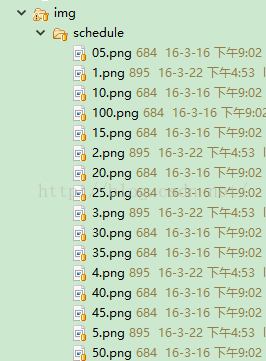 我有20張圖片,分別是5%,10%到100%,起初有個錯誤的想法,那就寫20個if語句,,如果傳過來5,就顯示5%的圖片,如果是100,就顯示100%的圖片。這是及其錯誤的做法。