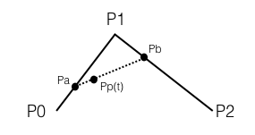 其中Pp(t)的經過路徑就是我們所求的二階貝塞爾曲線,那么其實我們也可以將其從一階進行演變: