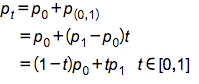 pt是p0p1上的任意一點,p0pt / ptp1 = t。從而我們可以引出下面的推導