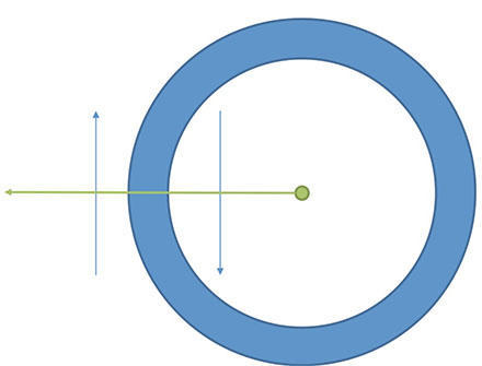 S2中引出的射線L2,與兩條子路徑的正方向相交,計數(shù)器+2,結(jié)果為+2,在外面。