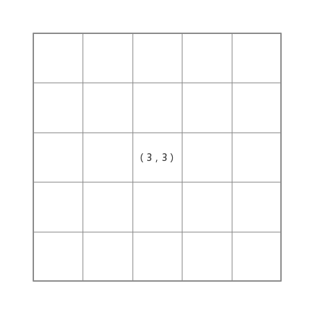 比如在寬度為 5 的畫布上點擊坐標 (3,3) ,根據上述公式得到像素序號是 (3-1) * 5 + 3 = 18 ,如圖所示: