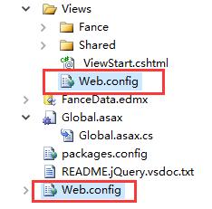 1、注意在mvc中有兩個web.config文件,如下圖,一個位于Views下,是用來控制view中的文件;還有一個在位于根目錄下,對所有文件起作用。我們修改根目錄下web.config