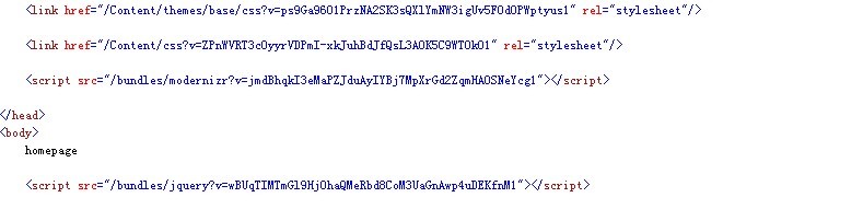 文件的連接地址已經是被捆綁過后的地址了,這個地址就是我們在之前注冊的時候用的key,后面它需要這個key去獲取value 靜態文件列表;要想你的捆綁起效果需要在注冊的時候加上一段:BundleTable.EnableOptimizations = true;代碼,意思是說開啟捆綁,如果不開啟捆綁則默認在調試環境里將不起效果,因為System.Web.Optimization使用了默認捆綁策略,如果是在Debug模式下,將不啟用捆綁,如果你人為的設置了將覆蓋默認設置;