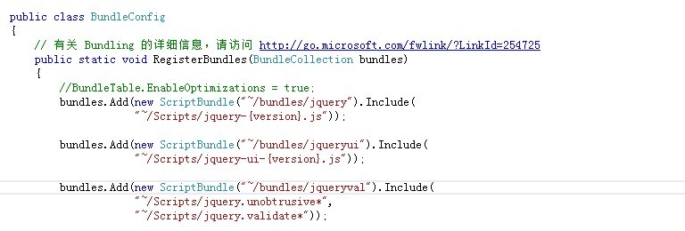 每當我們新建一個ASP.NETMVC4站點的時候都會在~/App_Start目錄下有一個BundleConfig.cs的啟動文件,當然創建其他的ASP.NET4.0及4.0以上的項目也會有;