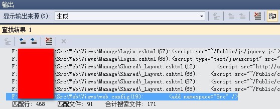 稍候思考了一下并在解決方案里搜索了"Src"除了頁面中引用的js腳本外還發現Views/web.config文件中包含"Src"