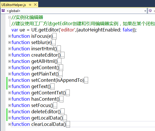 我在我的項(xiàng)目中新建了一個(gè)ueditorHelper.js文件,在文件中定義了一些ueditor常用的方法,以及對(duì)于ueditor的一些設(shè)置