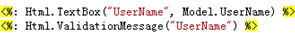 例如:Html.TextBoxFor(model=>model.UserName),則驗證有效;