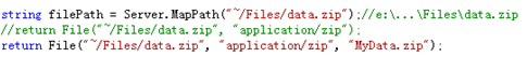 在Controller類中的輔助方法為:Controller.File(string filePath, string contentType, string fileName);