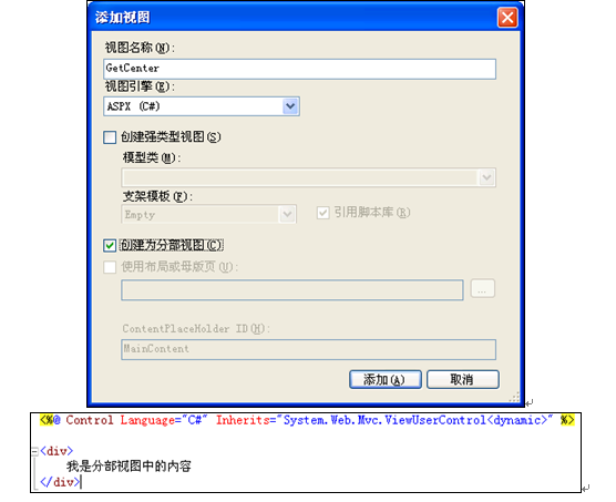 下圖演示了在創建視圖文件時,如何創建一個分部視圖文件(勾選“創建為分部視圖”復選框):