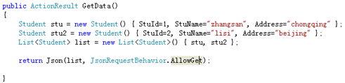注意:默認情況下mvc拒絕響應以get方式發送的ajax請求,需要使用JsonRequestBehavior.AllowGet。