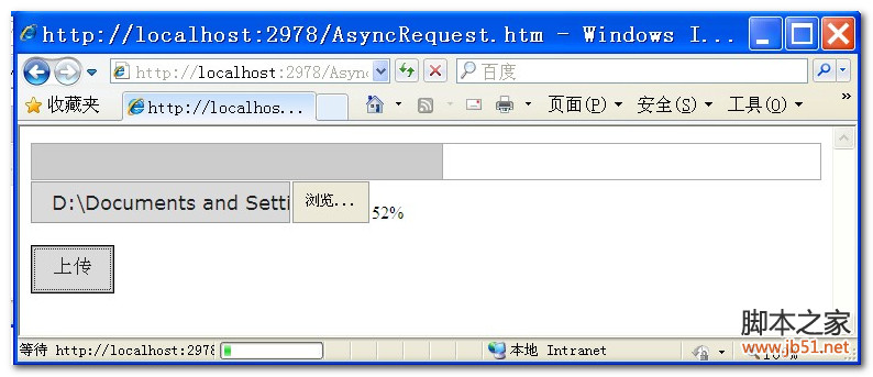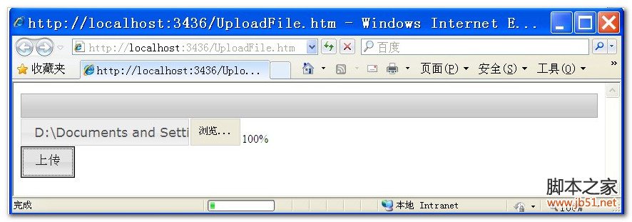 文件上傳的處理過程中,是不可以在處理過程中將信息傳回客戶端的,只有當(dāng)所有的處理都完畢之后才會傳回客戶端,所以如果是在上面的處理程序中寫 入context.Response.Write(percent);是不可能得到處理的過程,只能等到處理結(jié)束后,客戶端一次性得到所有的值。