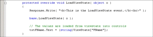 存儲視圖狀態之后,頁面樹中控件的狀態與頁面最后一次顯示在瀏覽器中的狀態相同。下一步是更新它們的狀態以加入客戶端的更改。處理回發數據階段使控件有機會更新其狀態,從而準確反映客戶端相應的 HTML 元素的狀態。例如,服務器的 TextBox 控件對應的 HTML 元素是 input type=text>。在回發數據階段,TextBox 控件將檢索 input> 標記的當前值,并使用該值來刷新自己內部的狀態。每個控件都要從回發的數據中提取值并更新自己的部分屬性。TextBox 控件將更新它的 Text 屬性,而 CheckBox 控件將刷新它的 Checked 屬性。服務器控件和 HTML 元素的對應關系可以通過二者的 ID 找到。