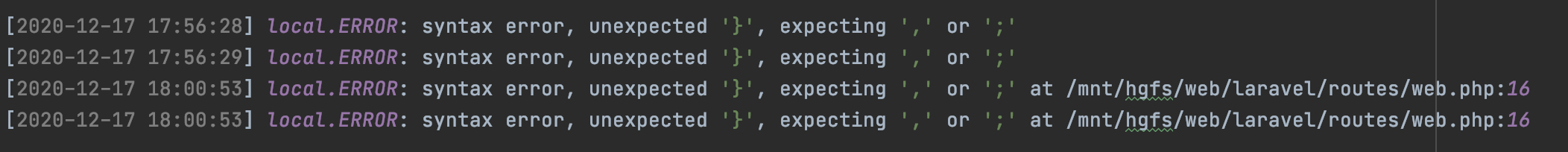 然后我們再重新請求一下接口再去查看錯誤日志的記錄,可以發現確實沒有記錄調用棧信息了,但是下面的信息還是不夠,我們沒法根據下面的信息判斷錯誤發生在哪一個文件和哪一行,如果能在記錄錯誤信息的時候同時記錄發生錯誤的文件和行就更好了,所以借著修改report方法