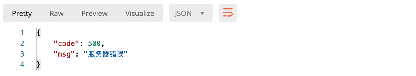 然后還不夠,我們發現剛剛我們把服務器端的錯誤信息以JSON格式返回給客戶端了,這是不允許的,我們應該只把一些客戶端錯誤返回給客戶端,比如密碼不足六位、身份證不合法諸如此類,而服務端出現錯誤時我們只返回給客戶端一個模糊的信息即可,比如“服務器錯誤”,把真實的服務器錯誤信息記錄在日志里面方便開發人員排查錯誤