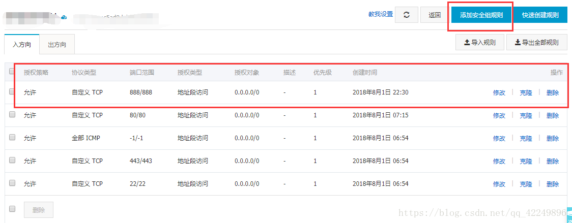 沒有888端口就添加安全組規(guī)則: