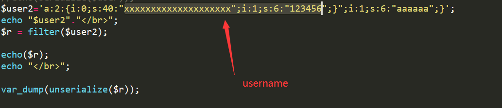 他會使得輸入的相應字符變為空,也就是讓序列化后的字符串變短,我們就可以利用此來吞掉原本的變量名,而注入我們想注入的代碼。