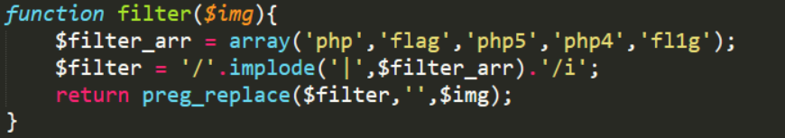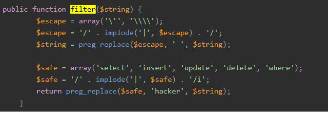 紅色部分是我們想要注入的,這道題的過濾函數有三個 ,但是導致長度變化的過濾是這個