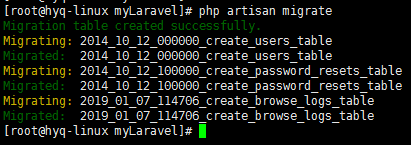 代碼如上,編輯完成后,執(zhí)行命令 php artisan migrate 會將所有未執(zhí)行遷移的數(shù)據(jù)表創(chuàng)建。如下
