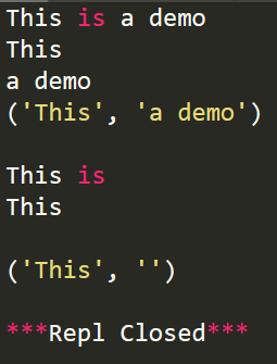 r2=re.split('\W+','This is 111 and That is 222',maxsplit=1)