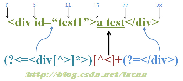 但是如果源字符串變一下,加個屬性變成“div id=”test1”>a test/div>”,那么除非標簽中屬性內容是固定的,否則就無法在Java中用逆序環視來實現了。