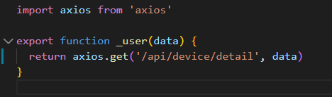 而后我們安裝axios ,當(dāng)然,其他的也行,在 src 目錄項目建一個 api文件, 再在api文件里面建一個 user.js 寫上下面這段代碼