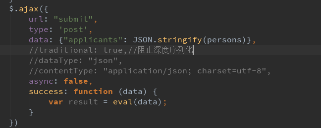 二、對于ajax的復雜對象,例如[{"id":"001","name":"小明"},{"id":"002","name":"小軍"}].,后臺post的處理